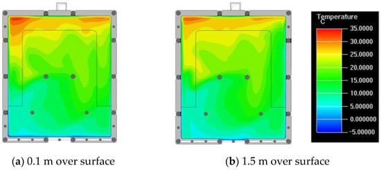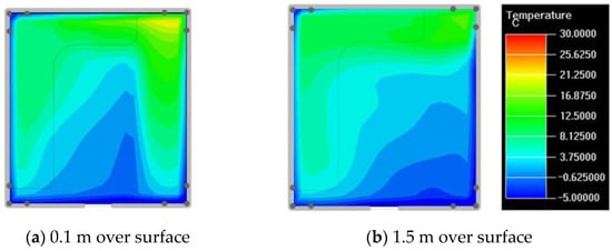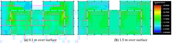 Finally, based on the worst cold conditions, the temperature distribution cloud map of the section 0.1 m and 1.5 m above the surface of the fire hypocaust in each building site was obtained through simulation calculations (Figure 2, Figure 3 and Figure 4).
