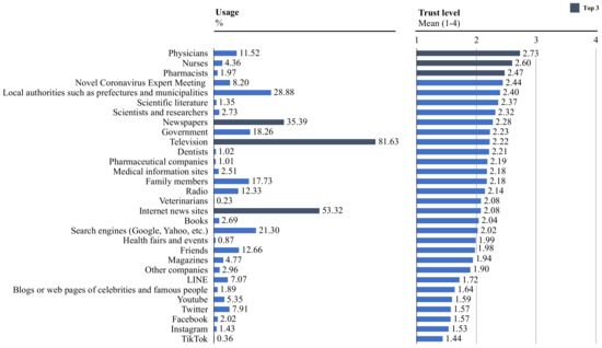 - Figueiras, M.J.; Ghorayeb, J.; Coutinho, M.V.C.; Maroco, J.; Thomas, J. Levels of Trust in Information Sources as a Predictor of Protective Health Behaviors During COVID-19 Pandemic: A UAE Cross-Sectional Study. Front Psychol. 2021, 12, 633550. [Google Scholar] [CrossRef]