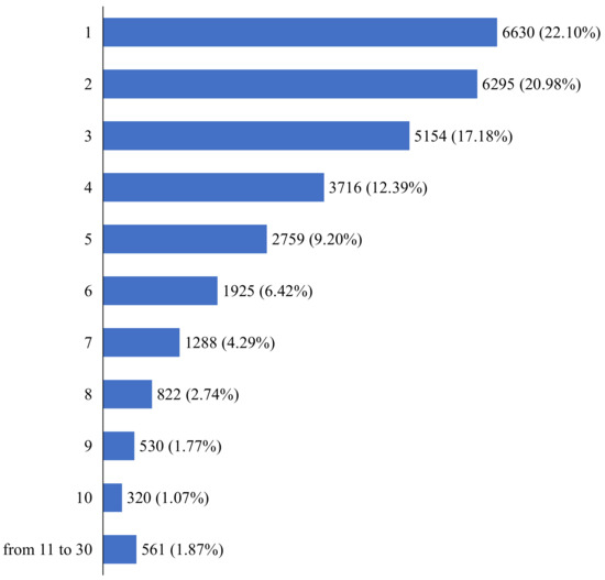 | 4 | 1.92 (1.74–2.11) *** | 3.65 (3.21–4.14) *** | 2.83 (2.57–3.13) *** |