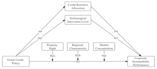 Above all, existing studies describe the financing constraint punishment effect and innovation compensation effect of GCP. Research on the economic consequences of GCP remains controversial due to differences in analytical methods and perspectives. In addition, sustainability performance is a composite measure of corporate financial and environmental performance, which reflects whether a company is making the best use of relevant resources for value creation and environmental protection. There is still a shortage of studies from this perspective. Considering that HPEs are the primary source of environmental pollution, the GCP aims to support green economy development by limiting the flow of funds to polluting areas. Using the ‘Green Credit Guidelines’ as a quasi-natural experiment to analyze the impact of GCP on corporate sustainability performance (CSP) is the best way to objectively reflect the effects of GCP. Therefore, the purpose of this paper is to explore the impact mechanism of GCP on the sustainability performance of HPEs through panel data of Chinese A-share listed companies from 2010–2015.