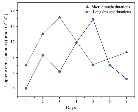 The isoprene emission rates during rehydration after short and long drought durations.