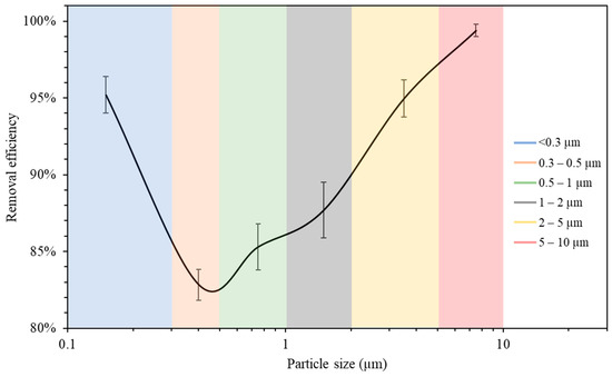 3.2.2. Removal Efficiency as a Function of Particle Size