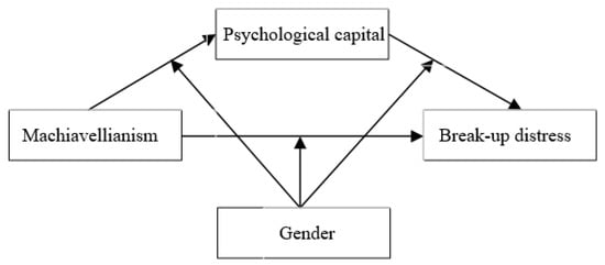 The present study aimed to determine whether psychological capital mediates the relationship between Machiavellianism and break-up distress. Furthermore, we determined whether gender moderates the mediation model mentioned above. The hypothetical theoretical model is as follows (Figure 1).