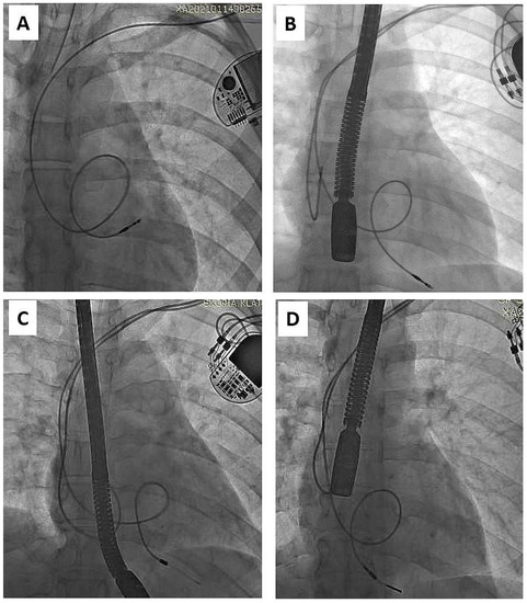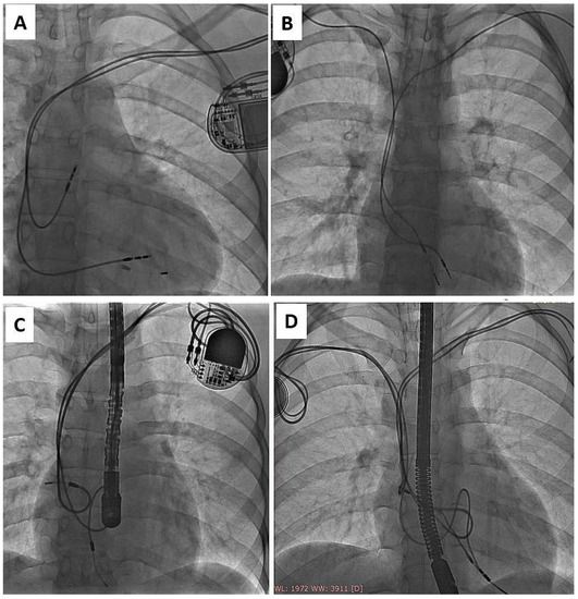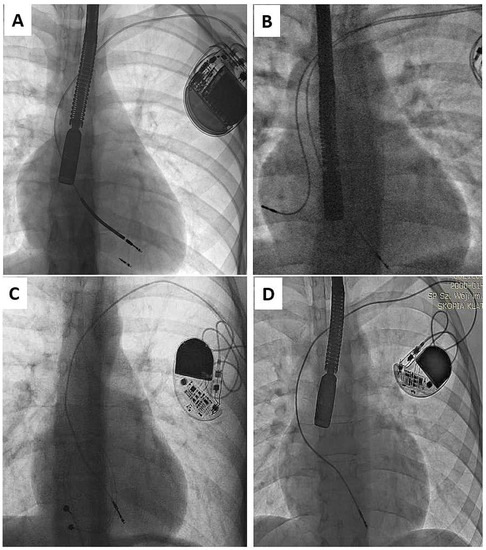 - Gabbarini, F.; Golzio, P.G.; Bordese, R.; Agnoletti, G. Reforming of intracardiac lead loops in pediatric patients. Int. J. Cardiol. 2014, 171, e86–e87. [Google Scholar] [CrossRef]