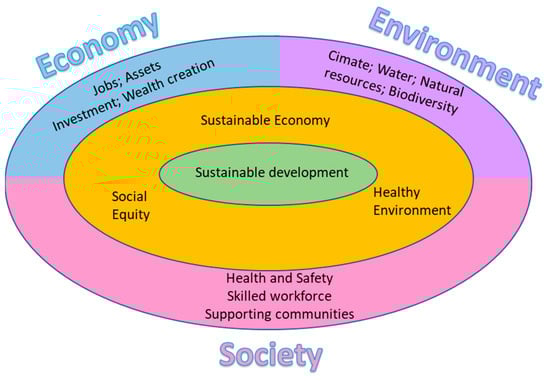 The three pillars of sustainable development, adapted with permission from Millard et al. (2016) [12].