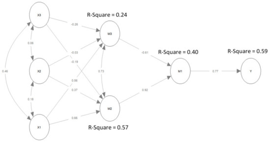 The M1, M2, X1 and X3 constructs were tested for test score reliability. Cronbach’s alpha (>0.6) was considered satisfactory, enabling us to conclude that the variables within the constructs measured the same phenomena [64].