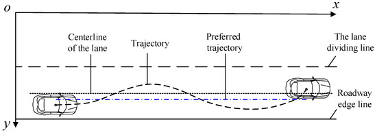 Lane keeping is among the most common events on the freeway. The natural driving behavior of vehicles in straight sections is observed, It is discovered that drivers will not strictly keep the center of the vehicle in the lane centerline, but use the lane width to keep the vehicle in the lane. In other words, the vehicle trajectory point deviates from the lane centerline and swings. Therefore, this paper proposes the preferred trajectory, the preferred trajectory deviation, and the preferred trajectory standard deviation index to describe the lane vehicle’s trajectory behavior characteristics. The parameter calculation is shown in Figure 4. The preferred trajectory is the mean value of the ordinate of all trajectory points in the vehicle’s lane, which reflects the vehicle preferred lateral position, and the trajectory usually swings around it. The lateral distance between the vehicle’s preferred trajectory and the lane’s centerline when the lane is kept is referred to as the preferred trajectory deviation, reflecting the driver’s preference for trajectory selection. The standard deviation of the preferred trajectory represents the dispersion degree of all vehicle preferred trajectories in the same lane.