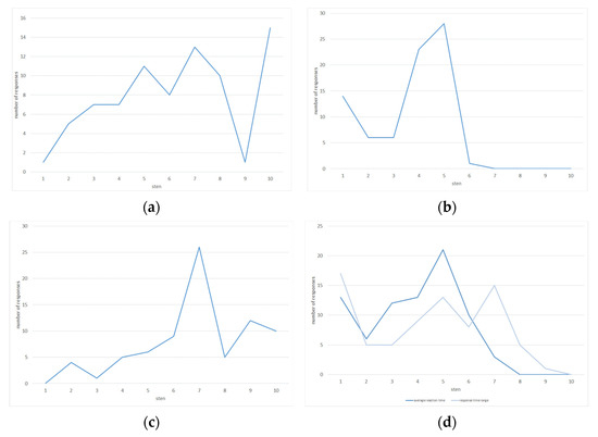 Psychotechnical tests—results: (a) Poppelreuter tables; (b) Piórkowski apparatus; (c) cross apparatus; (d) reaction time meter [own elaboration].