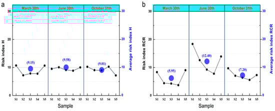 The risk value H and RCR of MPs in groundwater: (a) H risk index and (b) RCR risk index.