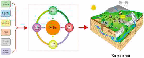 Schematic diagram of the main sources of MPs in karst groundwater.
