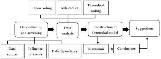 According to grounded theory, the collected text was coded and analyzed by using the QSR NVivo12 qualitative research software (https://www.qsrinternational.com/nvivo-qualitative-data-analysis-software/home, accessed on 22 March 2022). This study focuses on important online public opinion events in China under the background of normalization of epidemic prevention and control, uses grounded theory methods to study the key risk factors and change rules in online public opinion events and constructs a theoretical model of online public opinion transmission. Furthermore, the research focuses on primary data, generating concepts from massive raw data. Connections are made by comparing concepts in detail, ultimately building theoretical models based on coding. This paper mainly adopts open coding, axial coding and theoretical coding to complete the qualitative research on the online public opinion text data of COVID-19 (shown in Figure 1). Through text coding analysis, we can distinguish the focus of various types of online public opinion, identify the direction, mode and development trend of public opinion, and reflect the will of citizens. We can also understand the evaluation of epidemic prevention and control policies expressed by online public opinion, and then provide suggestions for optimizing government risk management.