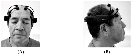 A commercially available, brain–computer interface headset, the Emotiv EPOC® (EMOTIV Inc. San Francisco, CA, USA) EEG gaming system, was used to assess the EEG activity. This is an easy-to-use, low-cost, non-invasive device consisting of 16 gold-plated contact sensors positioned on specific places of skull that record EEG activity and transmit the data wirelessly to a receiver unit connected to a computer. This instrument has been validated for research [].