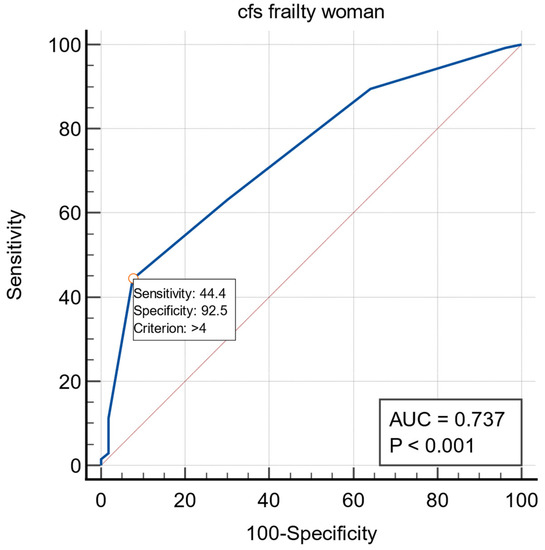 The ROC curves for frailty in the dislodgement in female subgroup.