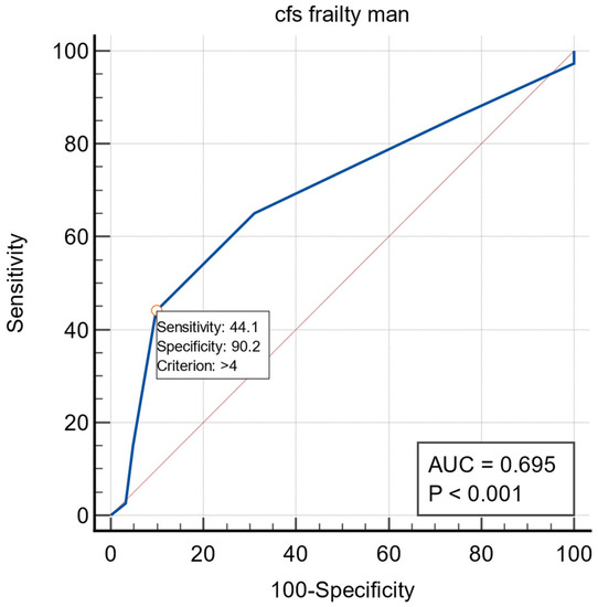 The ROC curves for frailty in the dislodgement in male subgroup.