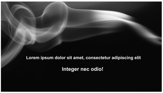 Relevant sociodemographic characteristics were assessed, in line with Altenmüller and her collaborators [], comprising information about age, self-identified gender, education, specialization for the ones with bachelor’s and Masters’ degrees, and, respectively, for the ones with Ph.Ds. According to the group to which they had been randomly assigned, they were exposed to health campaign messages which portrayed vaping as moral (“Electronic cigarettes are used to quit smoking. Vaping saves lives!”; Figure 1), immoral (“Electronic cigarettes are used to quit smoking Vaping kills!”; Figure 2) or neutral (“Lorem ipsum dolor sit amet, con sectetur adipiscing elit Integer nec odio!”; Figure 3).