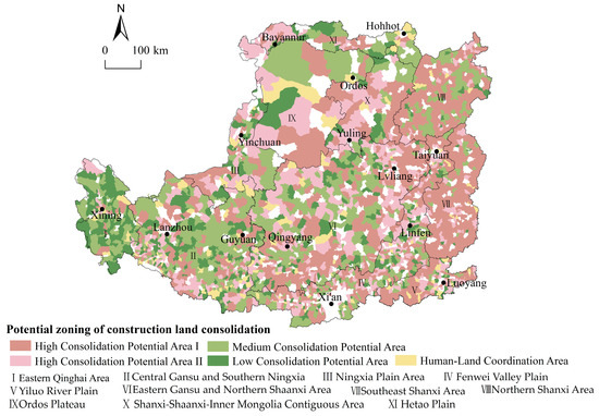 Potential zoning of construction land consolidation in the Loess Plateau.