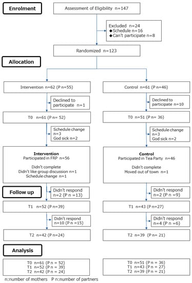 Mothers aged over 18 years were potential participants for this study. Inclusion criteria were as follows: (a) having sufficient Japanese speaking ability, (b) having and living with at least one child aged 3–6 years, (c) having a partner who could answer questionnaires, and (d) being available to participate in four bi-weekly programs. Mothers who exhibited mental health problems were excluded from this study.