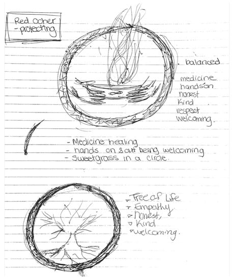 The tree of life is a powerful source of Indigenous health and wellness. The roots of the tree signify connection with Mother Earth, and the branches reaching to the sky indicate the linkage to the Creator. The teachings of the Sacred Tree indicate that “the life of the tree is the life of the people” []. Thus, through the story of the Sacred Tree, the participants were able to provide a visual illustration to signify healing and wellness.