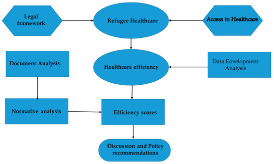 The importance of this study compared to other studies on Syrian refugees in Turkey lies in its mixed-methods approach and its specificity. Unlike other studies that simply evaluated the access to and quality of healthcare for Syrian refugees in Turkey, this study goes a step further to assess the efficiency of Turkey’s resource utilization to understand whether Turkey is using its limited resources efficiently to provide for the basic health needs of Syrian refugees. By extension, it also seeks to ascertain whether there is a correlation between (in)efficient use of resources and the access to and the quality of healthcare Syrian refugees are entitled to. Building on the work of Kuriki and Ikeda [15], which used the data envelopment analysis (DEA) model to evaluate the efficiency of the Syrian refugee healthcare system in Turkey, Lebanon, Jordan, Iraq and Egypt between 2015 and 2018, this study extends the period of study to 2020. Furthermore, this study, unlike Kuriki’s that focused solely on operational efficiency, breaks down the efficiency of the healthcare systems into operational and scale efficiency for a more in-depth analysis and understanding of their performance. Additionally, a legal normative understanding of the meaning of access to healthcare is used to compliment the DEA analysis, assess policy impact and prescribe appropriate policy recommendations. It contributes to the existing literature in four ways by: assessing the efficiency of Turkey’s healthcare resource utilization by identifying and contextualizing the operational and scale (in)efficiency of providers; benchmarking best practices in both operational and scale efficiency for performance improvement; evaluating the link between resource utilization efficiency and the quality of healthcare access for Syrian refugees; and providing practical and implementable policy recommendations.