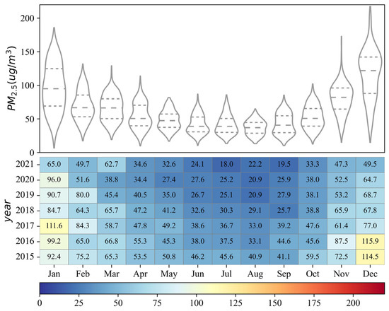 Inter-month variations of PM2.5 concentrations in the Yellow River Basin from 2015 to 2021.