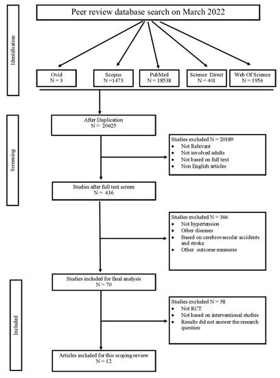 APA StyleRavichandran, S., Sukumar, S., Chandrasekaran, B., Kadavigere, R., N, S. K., Palaniswamy, H. P., Uppoor, R., Ravichandran, K., Almeshari, M., Alzamil, Y., & Abanomy, A. (2022). Influence of Sedentary Behaviour Interventions on Vascular Functions and Cognitive Functions in Hypertensive Adults—A Scoping Review on Potential Mechanisms and Recommendations. International Journal of Environmental Research and Public Health, 19(22), 15120. https://doi.org/10.3390/ijerph192215120