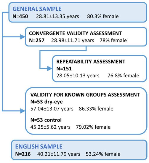 - Stapleton, F.; Alves, M.; Bunya, V.Y.; Jalbert, I.; Lekhanont, K.; Malet, F.; Na, K.S.; Schaumberg, D.; Uchino, M.; Vehof, J.; et al. TFOS DEWS II Epidemiology Report. Ocul. Surf. 2017, 15, 334–365. [Google Scholar] [CrossRef] [PubMed]