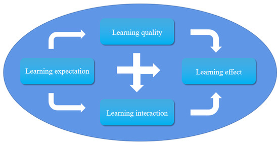 Online learning has advantages, including breaking the time and space constraints, flexibility in the learning methods, the support of both synchronous and asynchronous lectures, rewatchable learning content, and retraceable learning processes, which are of key importance for university education during the COVID-19 pandemic [9]. In recent years, researchers have also attempted to explore the influencing factors of students’ online learning such as assessing the relationship between student learning performance and social media usage through the constructivist theory during the COVID-19 pandemic. The findings indicated that online learning mediated the relationship between student interactivity and satisfaction during the COVID-19 pandemic, and that collaborative learning and student engagement using social media had a direct positive impact on student–peer and instructor interactions. Furthermore, student interactions with peers and teachers had a direct positive impact on online learning [10]. A study [11] discovered that individual characteristics specific to each student, such as the student’s knowledge, needs, and preferences for the quality of online education influence the students’ behavior and attitude. Despite the rapid development of online learning promoted by the COVID-19 pandemic, there were still many problems in the online learning process. For example, relevant research has found that, when students face boring online lectures, insufficient auxiliary equipment, and poor network quality, it decreases their learning participation [12]. In addition, some scholars have conducted research on the role of factors influencing online learning. For example, Sarfraz et al. [13] conducted a study on medical students’ online learning, which found direct and indirect impacts of the learning perceptions on learning outcomes through their preparation for online learning. They also identified the moderating role of teachers’ online teaching preparation on medical students’ online learning perceptions and learning outcomes. Miao and Ma [14] explored the correlation among online interaction, self-regulated learning, social presence, and online learning engagement. The results of the study suggested that online interaction and self-regulation influence social presence, and that social presence mediates online interaction and learning engagement, as well as mediates self-regulation and learning engagement. In addition, some factors, such as social isolation and economic recession, bring anxiety and stress to students [15], which in turn affects their online learning effectiveness [16].