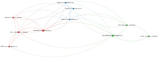 Various software is available to conduct a scientometric analysis and visualize the outputs [33]. In this study, VOSviewer 1.6.15, which was developed by Van Eck and Waltman (VOSviewer: Leiden, The Netherlands) [34], was used to perform the bibliometric analysis and visualize the networks of the authors, countries, co-citations, and terms. This software analyzes the relatedness and similarities between the publications in terms of the keywords co-occurrence, co-authorship, co-citation of references, and common terms in the titles and abstracts, which are recognized through text mining techniques. In general, the visualization output can be interpreted in the following way: the circle size and label font illustrate the number of occurrences, the distance between the circles shows the similarity and relatedness between the publications, and the colors depict the clusters/different groups with the time information, and the x-axis and the y-axis have no meaning [35].