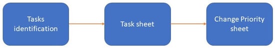 Using a task identification sheet, the work is divided, then the percentage that each activity represents in the shift and which activities the employee considers difficult is identified. The analysis must be performed for activities with more than 10% of the shift participation. Then, with the work divided into tasks, each task is specified with the risk assessment for each body region. Three risk factors at work are considered, assigning a classification by category. The factors are: level of effort for different organs and regions, duration of continuous effort, and frequency of effort. Finally, when evaluating scores, it is possible to establish priorities for change. It is possible to view an evaluation that reports a priority level, as shown in Table 2, according to the combination of the effort, duration, and frequency categories. The reference tables mentioned above can be found in the work []. Based on the combination of the score, it may be to establish the priorities for change, the Table 2 reports the priority level according to the combination of the effort, duration, and frequency.
