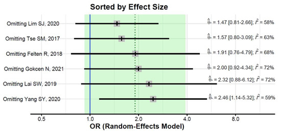 Leave-one-out sensitivity analyses [31,32,33,34,35,36].