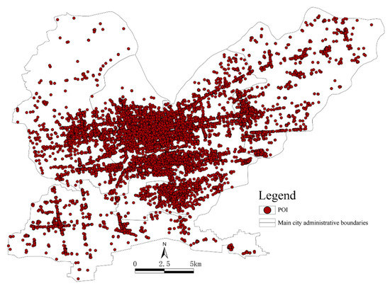 The distribution of POI data from the main urban area in Jiaozuo.