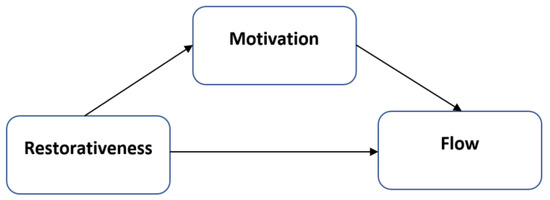 Based on the JD-R model, which assumes job resources (i.e., restorativeness) enhance employee energy and motivation fostering worker growth, learning, and development [60,61], through a motivational process, we expect that restorativeness is positively linked with student motivation. Motivation in the JD-R model is a mediator of the relationship between job resources (in this study, restorativeness in the learning environment) and positive outcomes (e.g., flow in this case). Generally, the positive effects of the environment have been demonstrated in previous studies [11,47,66,67], but the relationship with restorativeness, motivation, and flow has yet to be considered.