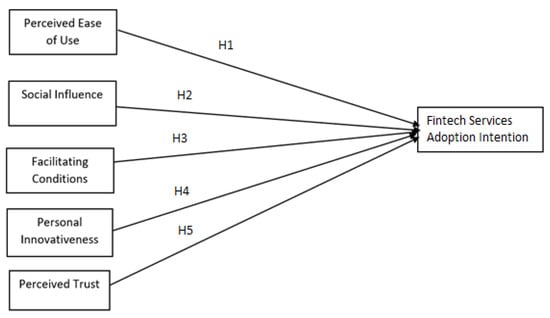 Behavioral intention can be defined as the probability of a person performing some behavior [44]. Behavioral intentions are psychological drivers that measure the amount of effort a person is prepared to expend to carry out a behavior [45]. In this study, behavioral intention to use fintech services was used as the dependent variable. Earlier studies also used behavioral intention as the dependent variable [46,47].