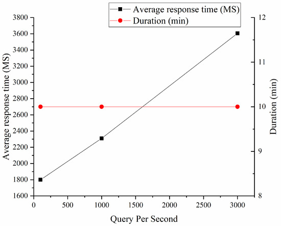 The operation of the system under different pressures is shown in Figure 8. The system response time is taken as the evaluation index, and the system’s response under three different pressures is given. In the test environment, the smart medical cloud service platform runs well under three different pressure conditions