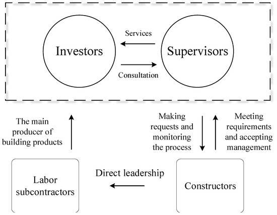 In general, investors, as ultimate controllers of projects, have the highest leadership, but their expertise is weak; the investors may be unable to give comprehensive and accurate guidance by relying more on the advice from consultants and supervisors who manage the project. It is common that the expertise of investors is not commensurate with the power they hold [26]. The result of this phenomenon is that the subjective belief from construction and labor subcontractors, i.e., that they will satisfy investors, often produces very different results.
