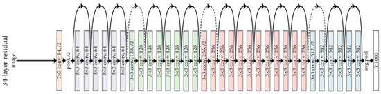 ResNet50 is a variant of the ResNet model, which has 48 convolution layers along with 1 MaxPool and 1 average pool layer. It has 3.8 × 109 floating point operations. Since the vanishing gradient problem is common in CNN-based models during backpropagation, the ResNet-based model uses a “skip connection” to overcome such a problem, as shown in Figure 6.