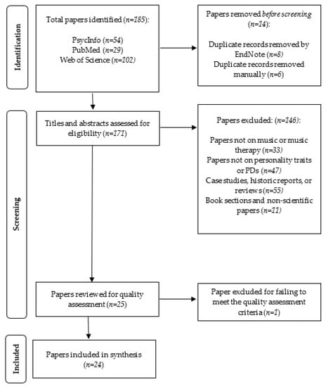 Chicago/Turabian StyleHaslam, Rowan, Annie Heiderscheit, and Hubertus Himmerich. 2022. "A Systematic Review of Scientific Studies on the Effects of Music in People with Personality Disorders" International Journal of Environmental Research and Public Health 19, no. 23: 15434. https://doi.org/10.3390/ijerph192315434