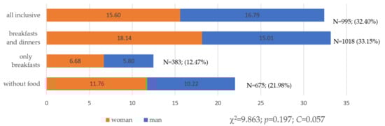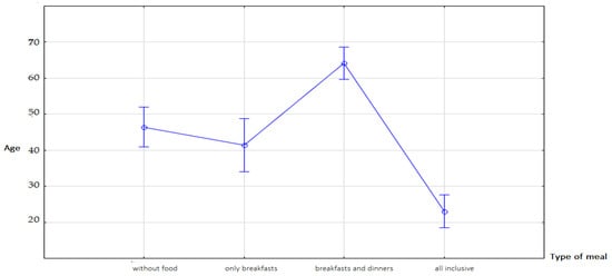 7]. For this reason, guests dine outside the hotel. We also point out that consumers aged 35–46 dine outside the hotel restaurant to try local dishes. Guests do this mainly during lunch and dinner.