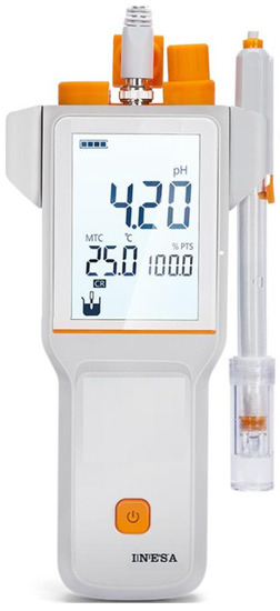 The study demonstrates that the water filling state and pH have a coupling effect on the crystallization amount. The crystallization amount of the pipe increases with the increase of pH. When the pH is 8~10, the crystallization amount of the semi-filled state is higher [54], and the precipitation rate of calcite calcium carbonate is the highest when the pH is close to 10 [33]. The site conditions and test results illustrate that the groundwater at the blockage location of the drainage pipe is strongly alkaline. Thus, long-term monitoring of groundwater pH is of great significance in guiding the crystallization treatment of the tunnel drainage pipe. The groundwater pH can be measured by a portable pH meter (Figure 10), which can be carried by operation managers during daily or regular inspections to timely measure the groundwater pH at the crystalline blockage location of the drainage pipe, so as to provide a basis for the maintenance of the drainage pipe.