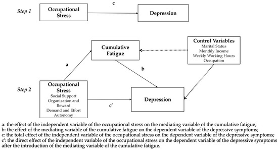 The mediating effect framework of cumulative fatigue between occupational stress and depressive symptoms.
