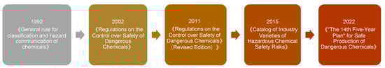 - The 13th Five-Year Plan for the Safe Production of Hazardous Chemicals. Ministry of Emergency Management of the People’s Republic of China. Available online: https://www.mem.gov.cn/gk/gwgg/201709/t20170927_241768.shtml (accessed on 11 November 2022). (In Chinese)