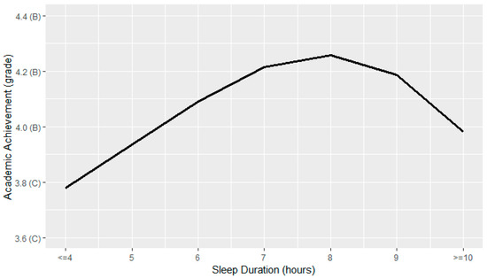 Akin to our findings for physical activity, optimal academic achievement was associated with amounts of sleep that deviated slightly from public health recommendations. Our hypothesis was partially supported in that we found an inverse-U relationship in which optimal scores for academic achievement were reported by adolescents accruing seven to nine hours of sleep each night as opposed to eight to ten hours as per our predictions based on the American Academy of Sleep Medicine recommendations [44]. The highest grades were observed among adolescents meeting the lower bound of the sleep recommendations (i.e., 8 h). However, sleeping one hour less than recommended (i.e., 7 h) was associated with slightly higher grades than having nine hours of sleep. This is surprising given that research has shown insufficient sleep—among other aspects of sleep such as quality—is associated with poorer learning and school performance [4], and that sacrificing sleep for studying can have negative academic consequences [45]. It was also notable that adolescents who reported sleeping for ten or more hours each night also reported comparable grades to those who slept only five hours. One plausible reason for this may be due to the limited range of response options in the YRBSS; ten or more hours is the highest possible choice and as a result, adolescents who met the upper bound of the sleep recommendations were intermixed with those who exceeded it. Given that empirical evidence has established links between long sleep duration and depression [46,47,48] as well as depression and poorer academic achievement [49,50,51], our findings for ten or more hours should be interpreted with caution. Considered in light of this limitation, our findings suggest getting slightly less than the recommended amount of sleep may not be a detriment to academic performance, but rather, too much sleep is of greater concern.