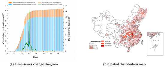 Spatial and temporal distribution of COVID-19 in China: (a) time-series change diagram; (b) spatial distribution map.