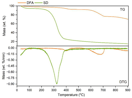 3.1. TG Analysis of SD and DFA