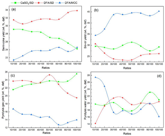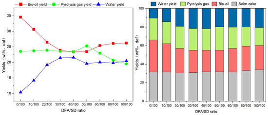 3.2. Product Distribution from DFA/SD Pyrolysis