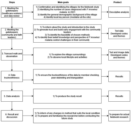 - Naserrudin, N.A.; Culleton, R.; Hod, R.; Jeffree, M.S.; Ahmed, K.; Hassan, M.R. Exploring the key anthropological drivers of and barriers to zoonotic malaria preventative behaviour in a community exposed to Plasmodium knowlesi infection in Malaysia: Protocol for a qualitative study with a participatory research design. BMJ Open 2022, 12, e060866. [Google Scholar] [CrossRef] [PubMed]
