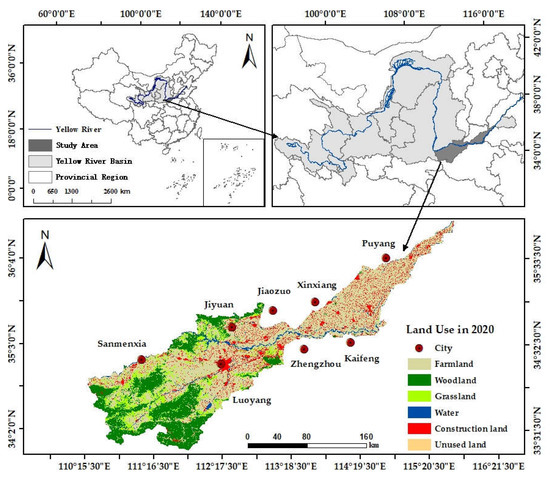 - Xiao, D.; Niu, H.; Yan, H.; Fan, L.; Zhao, S. Spatiotemperal evolution of land use pattern in the Yellow River Basin (Henan section) from 1990 to 2018. Trans. Chin. Soc. Agric. Eng. 2020, 36, 271–281. [Google Scholar] [CrossRef]