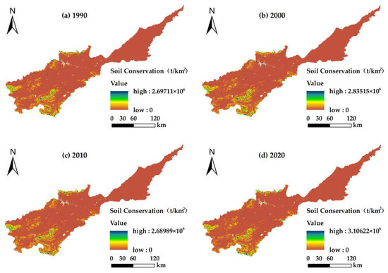 3.3.2. Spatial Distribution Characteristics of Soil Conservation