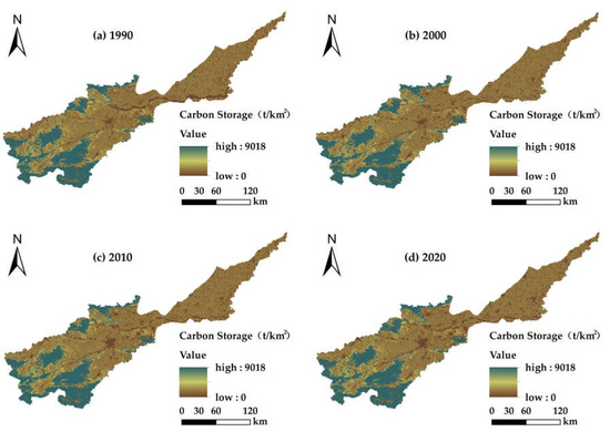 3.4.2. Spatial Distribution Characteristics of Carbon Storage