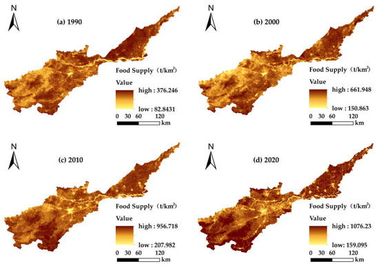 3.5.1. Temporal Variation Characteristics of Food Supply